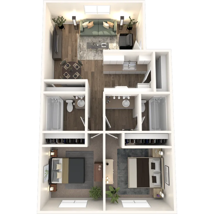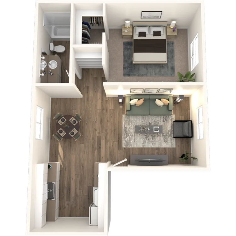 - Studio, 1-, and 2-Bedroom Floor Plan Options